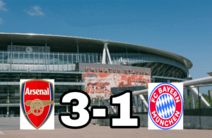 In what will stand as one of the most memorable nights in recent European football action, Arsenal produced a commanding performance to defeat Bayern Munich 3–1. The game captivated everyone watching as it unfolded at a pulsating pace, filled with tactical intelligence, fearless finishing, and a relentless team spirit that left Bayern stunned and the home fans chanting long after the final whistle.