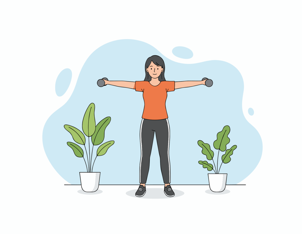 - Using resistance bands or adjustable dumbbells